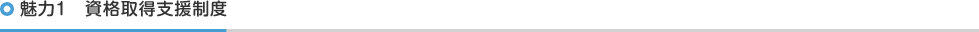 当社業務に関する国家資格または公的資格に関し、初回受験料の負担や外部講習費用の補助を積極的に行い、合格者には手当を支給する制度をとっています。